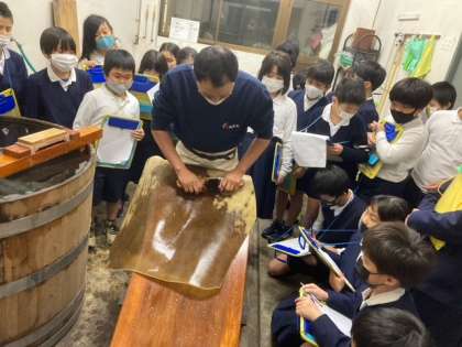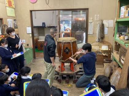4年生は太鼓正に社会見学に行きました。