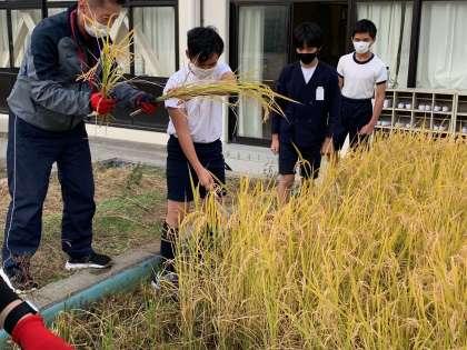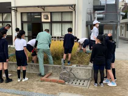 5年生と同じように、ゆっくりゆっくり確認しながら鎌を稲にしっかりあてて、