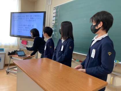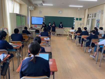 町の幸福論 公開日 2021/11/15 更新日 2021/11/15 6年生 パワーポイントでまとめたスライドをもとに、 「未来の栄の町が幸せになるための提案」をしています。 校長先生に聞いてもらい、講評をいただきました。 いいね(0)