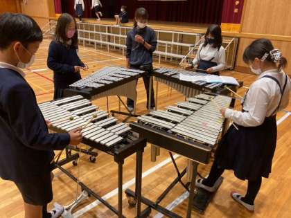 自主練習 公開日 2021/11/16 更新日 2021/11/16 5年生 「先生、鉄琴の練習を見てくれませんか。」 と、職員室に呼びに来てくれました。 自主練習に励む姿に感心感心。 数日前の自分たちをふり返って、 「ここが演奏できひんかったのが、なつかしい!」 なーんて、うれしそうです。 がんばったあかしだね。 いいね(0)