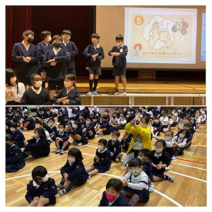 児童集会 公開日 2021/11/18 更新日 2021/11/18 お知らせ 今日の児童集会は、保健委員会の発表です。 最後に、みんなで手洗い体操もしました。 ♪ ピッカピカのっ さかえっこ ♪ いいね(0)