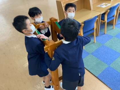 よいしょ よいしょ 公開日 2021/11/18 更新日 2021/11/18 4年生 学習発表会の講堂練習の後、 長胴太鼓を音楽室に運んでいます。 重たいけど、落とさないように、慎重に、大切に。 いいね(0)
