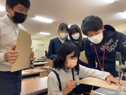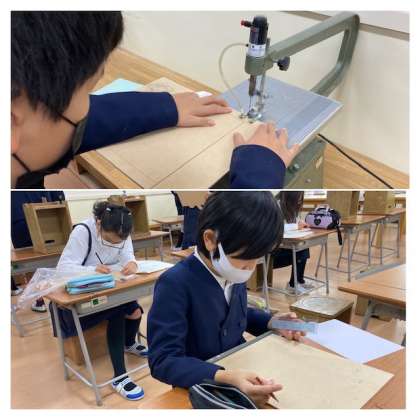 電動のこぎりを操っているのは5年生です。