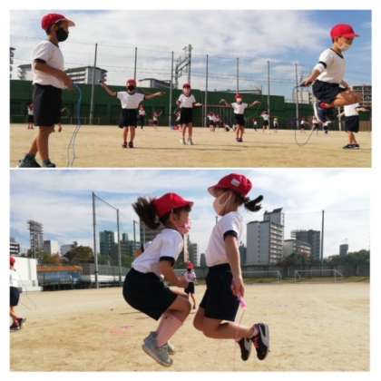 青空の下で。 公開日 2021/11/19 更新日 2021/11/19 1年生 体育科の授業で、なわとびをしました。 あやとびや交差とびをする子もいました。 使い終わった後に、なわとびを結ぶのも学習です。 「できひーん!」と言いながらも、最後までがんばりました。 「お家でも練習する!」そうです。たのもしい! いいね(0)