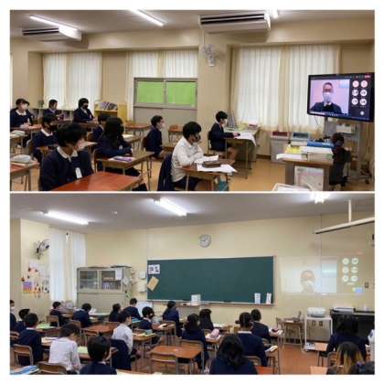 講堂での式は中止にして、教室からでのTeams始業式を行いました。
