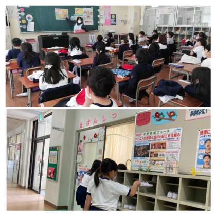 測定の前に教室で、免疫力についてのお話を聞きました。