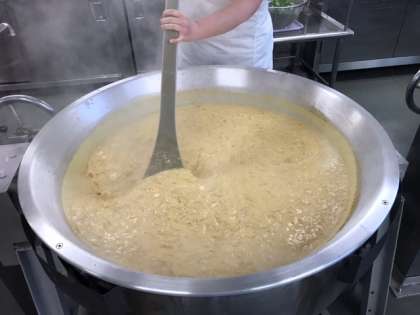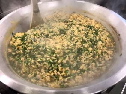 たくさんの液卵は、しっかり時間をかけて混ぜて、美味しい親子丼を作っています。
