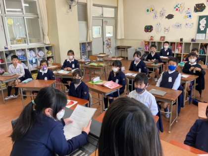 1時間目の国語の教科書を出して、一斉音読を始めました。