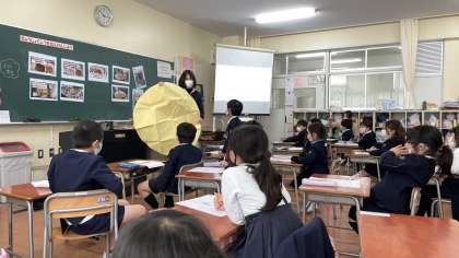授業のめあては、「きゅうしょくしつをたんけんしよう」です。