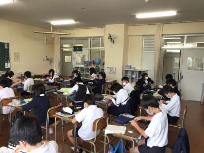さて、赤色の布を使って何を製作しているのでしょうか。完成をお楽しみに!!がんばれ5年生!