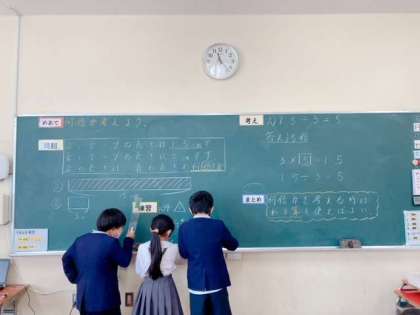 「何倍か」を求める方法を学習し、わり算を使って答えをだすことができました。