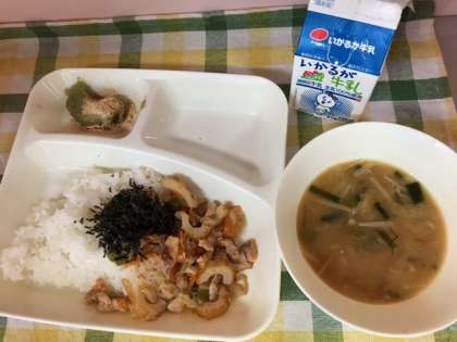 5月19日の給食は、「かやくご飯、じゃがいものみそ汁、まっ茶ういろう、牛乳」でした。