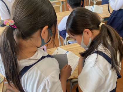 自分の考えと友達の考えを交流し、同じところや違うところを見つけることができました。