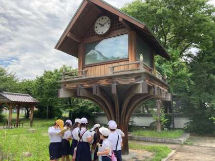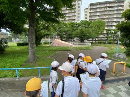 今日は社会科の学習で、栄小学校の校区をたんけんしました。