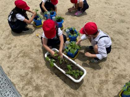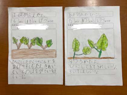 アサガオのかんさつ 公開日 2022/06/13 更新日 2022/06/13 1年生 アサガオがだんだん大きくなって、 本葉もどんどん増えてきたので、 「アサガオのおひっこし」をしました! 傷つけないように、そーっと、そーっと、 根っこから上手にぬいて、大きなプランターへ おひっこしさせました。 これで、もっともっと大きくなってくれますね! いいね(0)