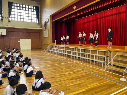 あいさつ名人 公開日 2022/06/13 更新日 2022/06/13 お知らせ 児童朝会で、先週のあいさつ週間でのあいさつ名人が各学年から1名ずつ発表されました。これからもたくさんの人があいさつ名人になれるように、誰にでも笑顔で元気なあいさつを見せていってほしいです。 いいね(0)