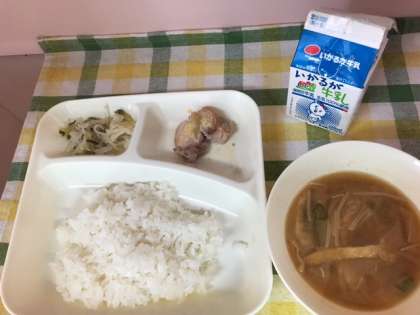 7月1日の給食は、「ごはん、牛乳、鶏肉のしょうゆマヨネーズ焼き、とうがんのみそ汁、切干しだいこんのゆずの香あえ」でした。