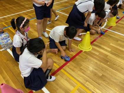班対抗で、かん電池カーレースをしました!