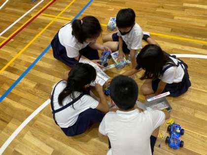 班のメンバーで、何つなぎをして、かん電池をいくつ使うと速くはしるのかを話し合いました。
