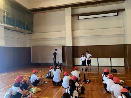退所式で宿舎に方にお世話になった感謝の気持ちをみんなで伝えました。