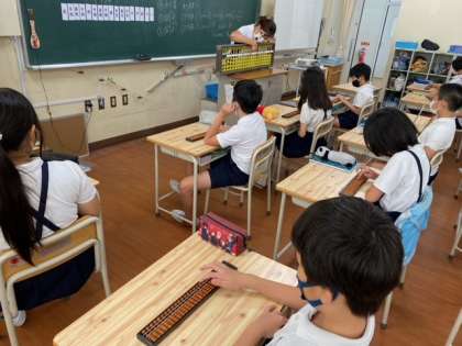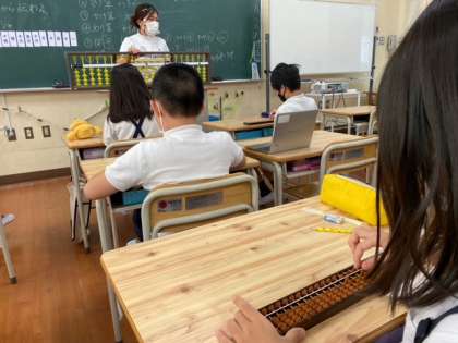 今日の算数はいつもの先生でなく、そろばんがとても得意なスーパー先生に教えてもらいました!