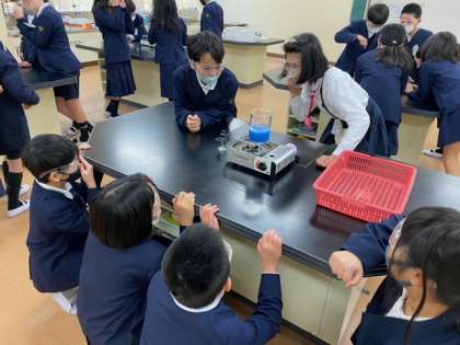 水のあたたまり方について学習しています。