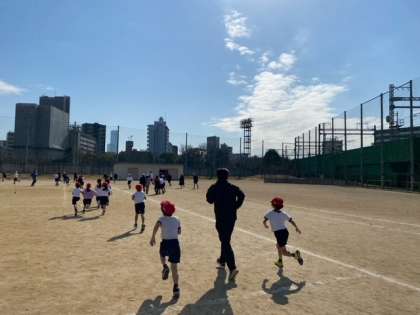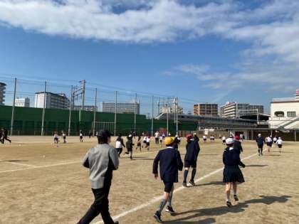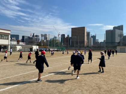 今日は1年生・3年生・5年生がかけあし運動をしました。