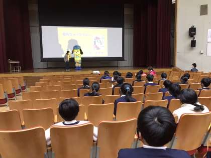 広い廊下、学習園、映画館のような体育館など、さまざまな場所を見つけながらウォークラリーを楽しみました。