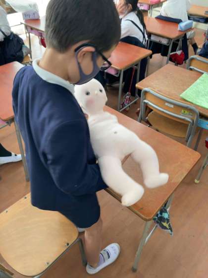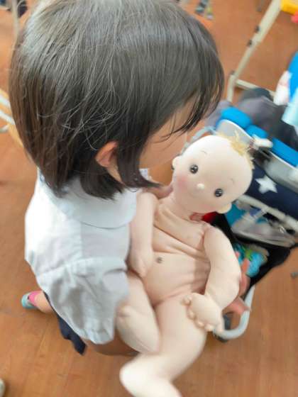 今日は保健の授業で赤ちゃんの人形を抱っこしました。