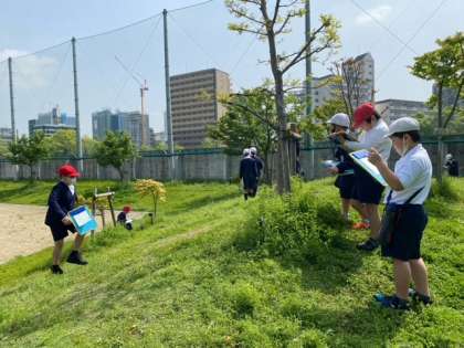 栄小学校には緑が多いので、春の生き物がたくさんいます。