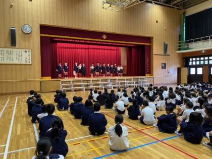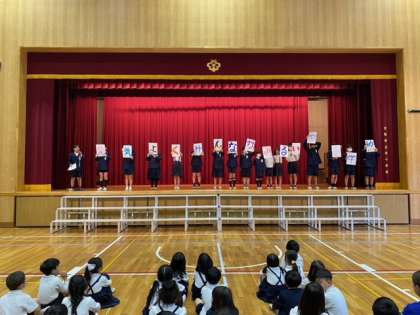 今日は栄小学校を引っ張っていってくれる4〜6年生の運営委員会、各委員会の代表の発表がありました。どんな学校にしていきたいのか、そのために自分はどんなことを頑張るのかをそれぞれが発表。