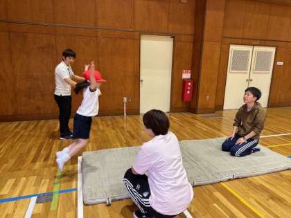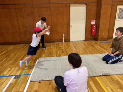 ジャンプはできても、両足で大きく前へ跳ぶとなると、難しく、苦戦する子どもが多かったです。