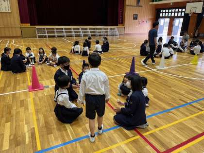 いよいよ今週からたてわり班活動が始まります。その前に…1年生と6年生で交流する会を開きました!初めは緊張している場面もありましたが、自己紹介をし、すぐに仲良くなりました。