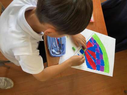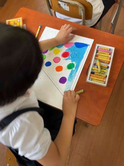 みんなカラフルなクラッカーを作成中。完成が楽しみですね。