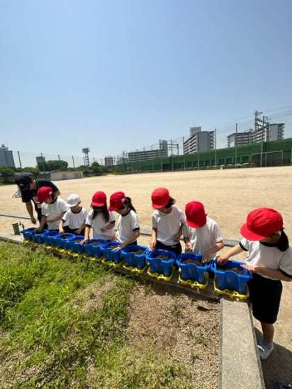 天気も良く、とても暑い中、子どもたちは「大きくなあれ」と言いながら頑張っていました。