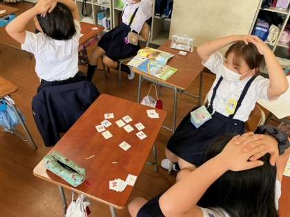 ディロン先生の言う数字を聞いて、カードを取るゲームをしました。