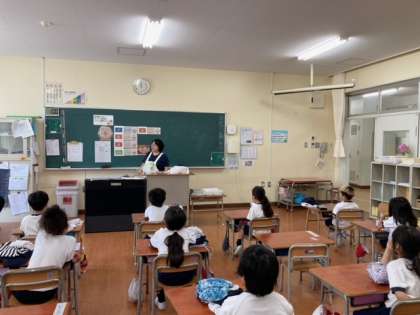 測定前には歯の健康について授業もしていただきました。歯磨きを毎日して、強い歯にしようね!