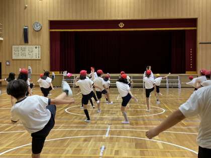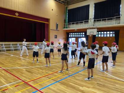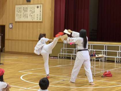 テコンドーとはどんなものなのかを教えていただき、模範演技の見学をして、基本的な動きの体験をしました。