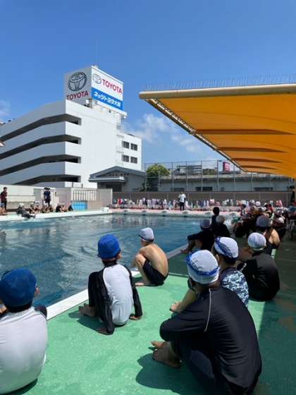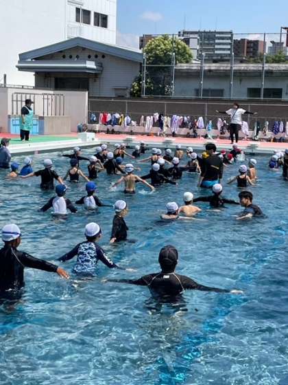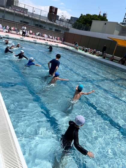 1年生は初めて学校のプールに入りましたが、2年生を見本に楽しく水浴びをしました。