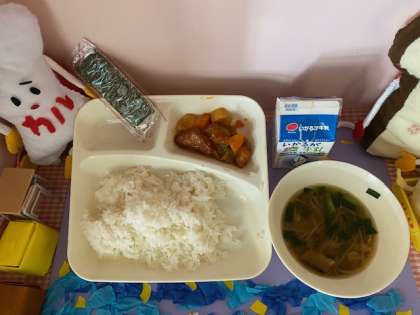 今日の献立:酢豚、中華みそスープ、焼きのり、ごはん、牛乳