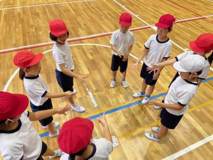体育では鬼を決めるジャンケンをしています!1年生の中では鬼が大人気!