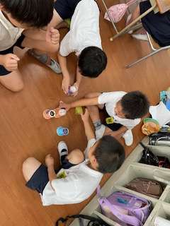 みんなで作って、絵を描いて、最後は楽しく飛ばして遊びました。