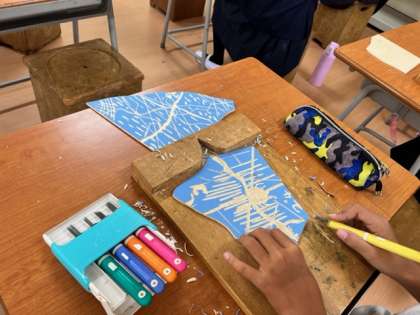 図画工作では「ほってすってみつけて」という版画の勉強をしています。