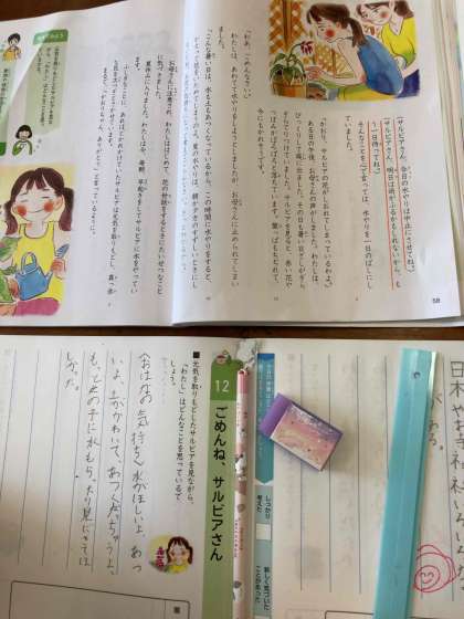 今日は道徳の時間に、サルビアの花の気持ちを考えました。みんなサルビアの立場に立って、気持ちを書けましたね。