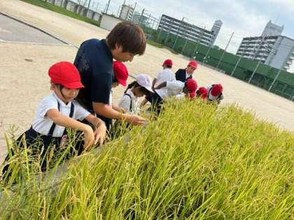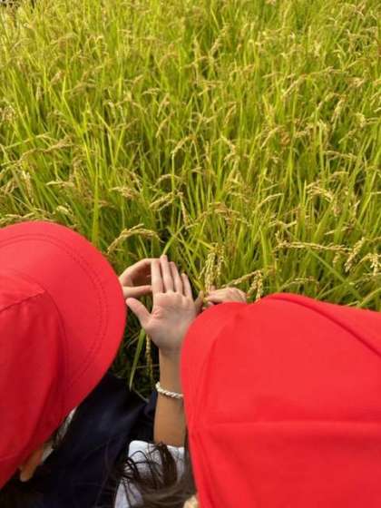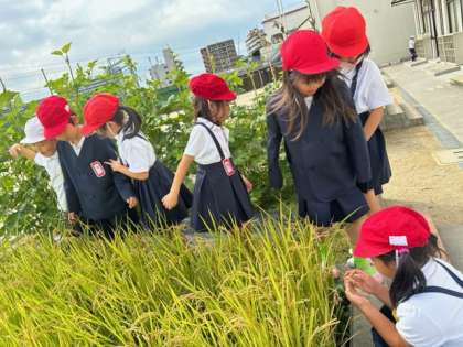 稲の収穫が始まる前に、学校で育てている稲の観察をしに行きました!