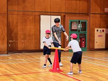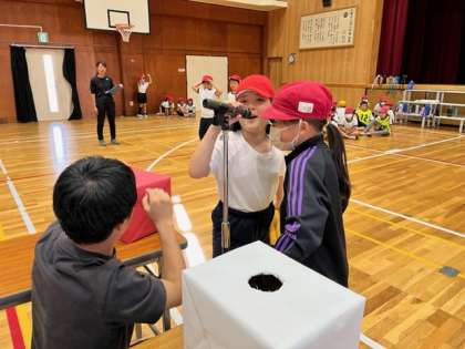 くじをひいて、でたボールを2本の棒ではこびます!ドキドキ、ワクワク!