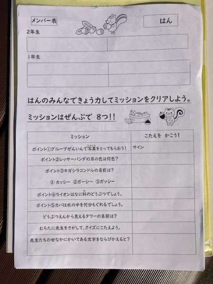 これから2年生をリーダーにグループワークを行います。どんな動物がいるかなぁ?ミッションはクリアできるかな??