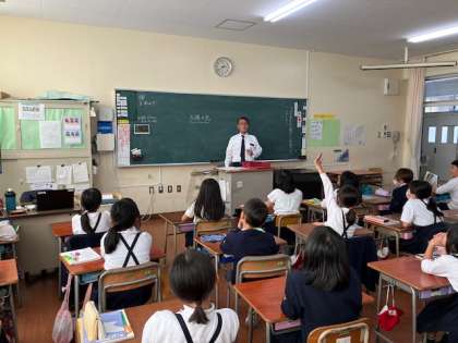 なんと、校長先生です!みんな大喜びで張り切って学習をしています。