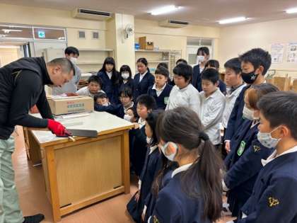 今日の図工はゲストティーチャー!管理作業員さんに来て頂き、のこぎりの安全な使い方について教わりました。初めてののこぎりはドキドキだったけど、とてもみんな上手に使えていましたね!