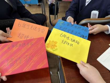 その招待状が6年生に届けられました!1〜5年生の思いがつまった招待状。とってもうれしくて6年生もニコニコでした!29日の会が楽しみです!